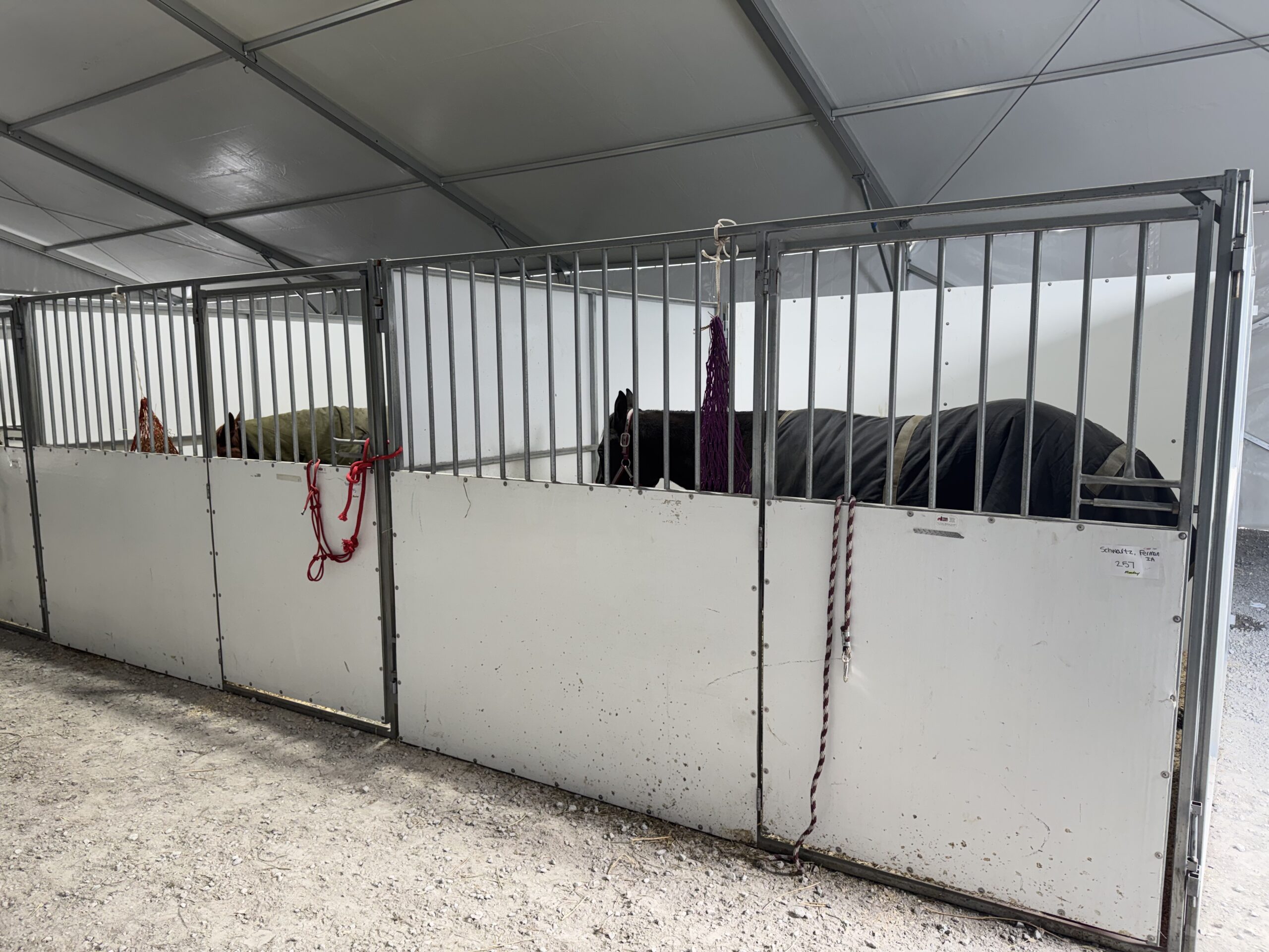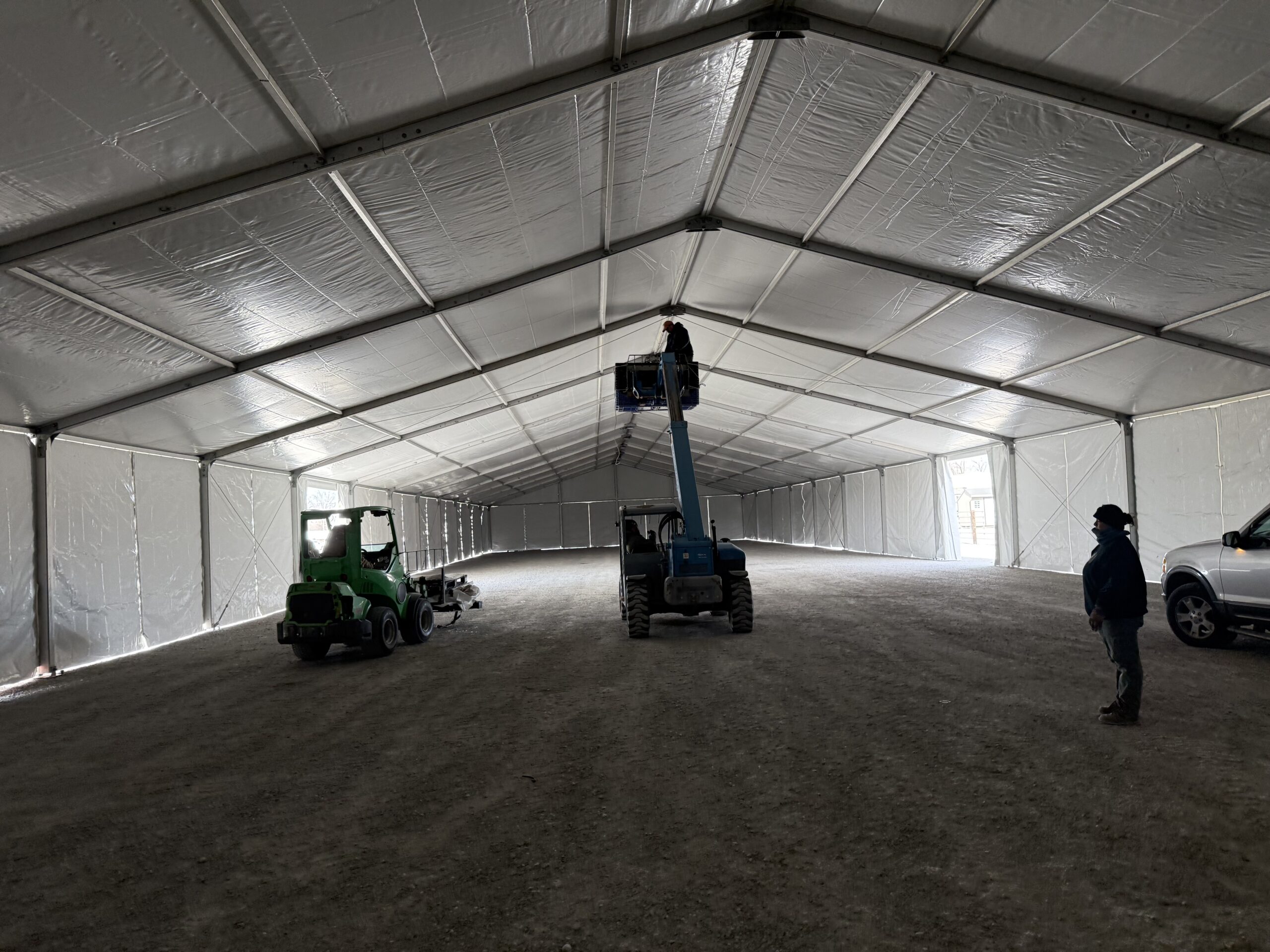This year’s event was bigger and better than ever, drawing horse enthusiasts, buyers from across the country (and even Canada!), and top-quality draft teams, riding crosses, ponies, mules, and more to the ring. To handle the crowds and keep everyone cozy amid potential winter weather, we stepped up with two massive clearspan structures – including a huge 60′ × 230′ Losberger Clearspan tent (that’s 50 feet longer than our 2024 setup of 60′ × 180′!) plus an additional 49′ x 66′ (15m x 20m) Liri clearspan structure for rent for extra space and flexibility.